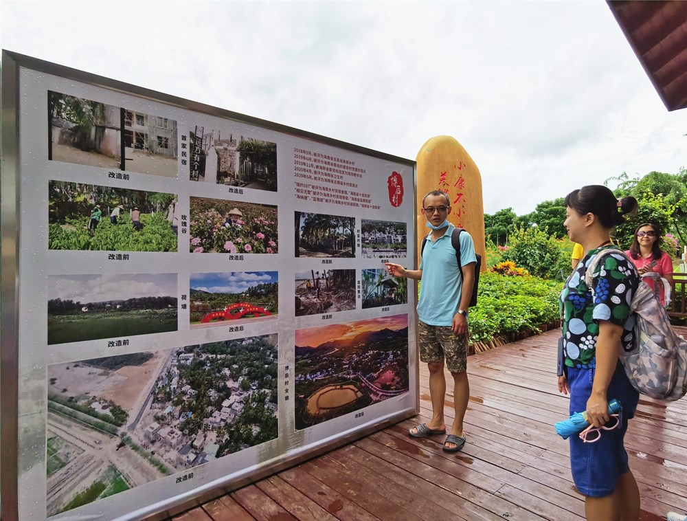 第一站,大家来到了博后村革命老区。2013年,习近平总书记在玫瑰谷景区考察时留下了“小康不小康,关键靠老乡”的殷切嘱咐,而如今这句话也被博后村镌刻在村门口的石头雕塑上。博后村立足当地毗邻亚龙湾的优势,发展民宿,蹚出了一条新的发展路径。在这里,红色力量让博后村美出了新高度。党建统领、民主管理、多方监督的村级治理架构,成为了博后村乡村振兴路上坚不可摧的战斗堡垒。一幅“好山好水好黎乡”的美好画卷正徐徐铺开。