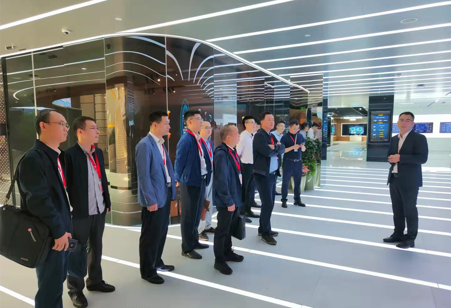 当天,李江山董事长一行陆续参观了华为公司坂田总部企业ICT技术展厅与东莞松山湖研发基地,深入了解华为“无所不及的智能、无处不在的联接、数字平台和个性化体验”的智能世界构建理念及数字化转型实践技术方案。