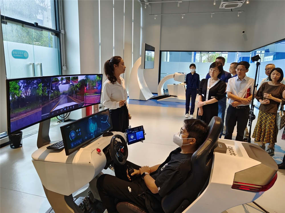 在座谈会上,集团规划与智慧交通设计院机电与智慧交通所所长关小杰向调研组一行详细介绍了车路协同、数字孪生隧道等智慧交通成果与业务发展情况。随后,调研组一行现场参观了集团战略合作单位百度Apollo无人驾驶的广州园区,了解集团与百度Apollo联合打造的车路协同、ACE智能交通引擎等新技术的落地情况。