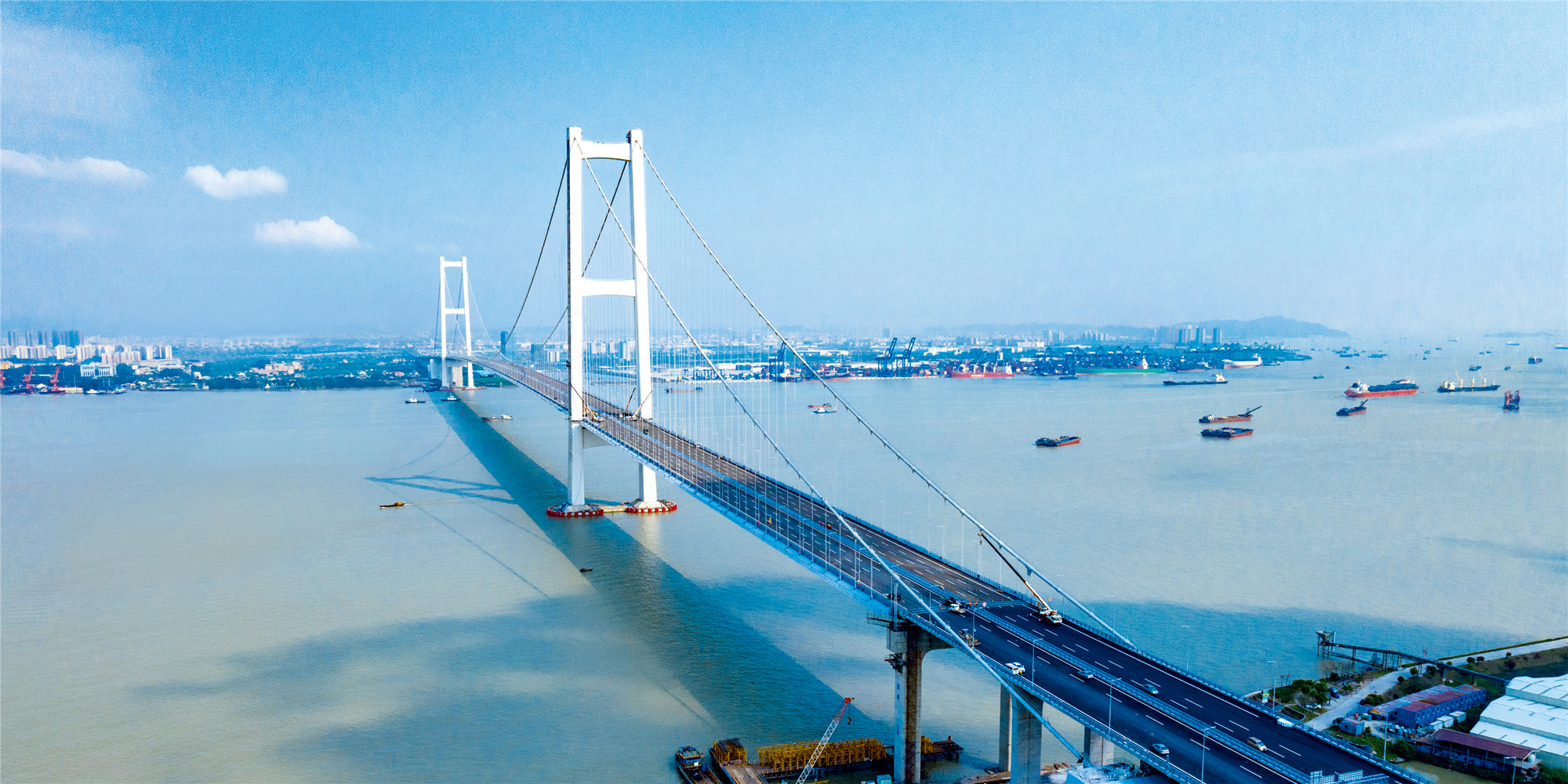 南沙大桥——在大小、高低的呼应中,钢筋水泥化作了一道优雅而坚定的天际线,腾飞而起。