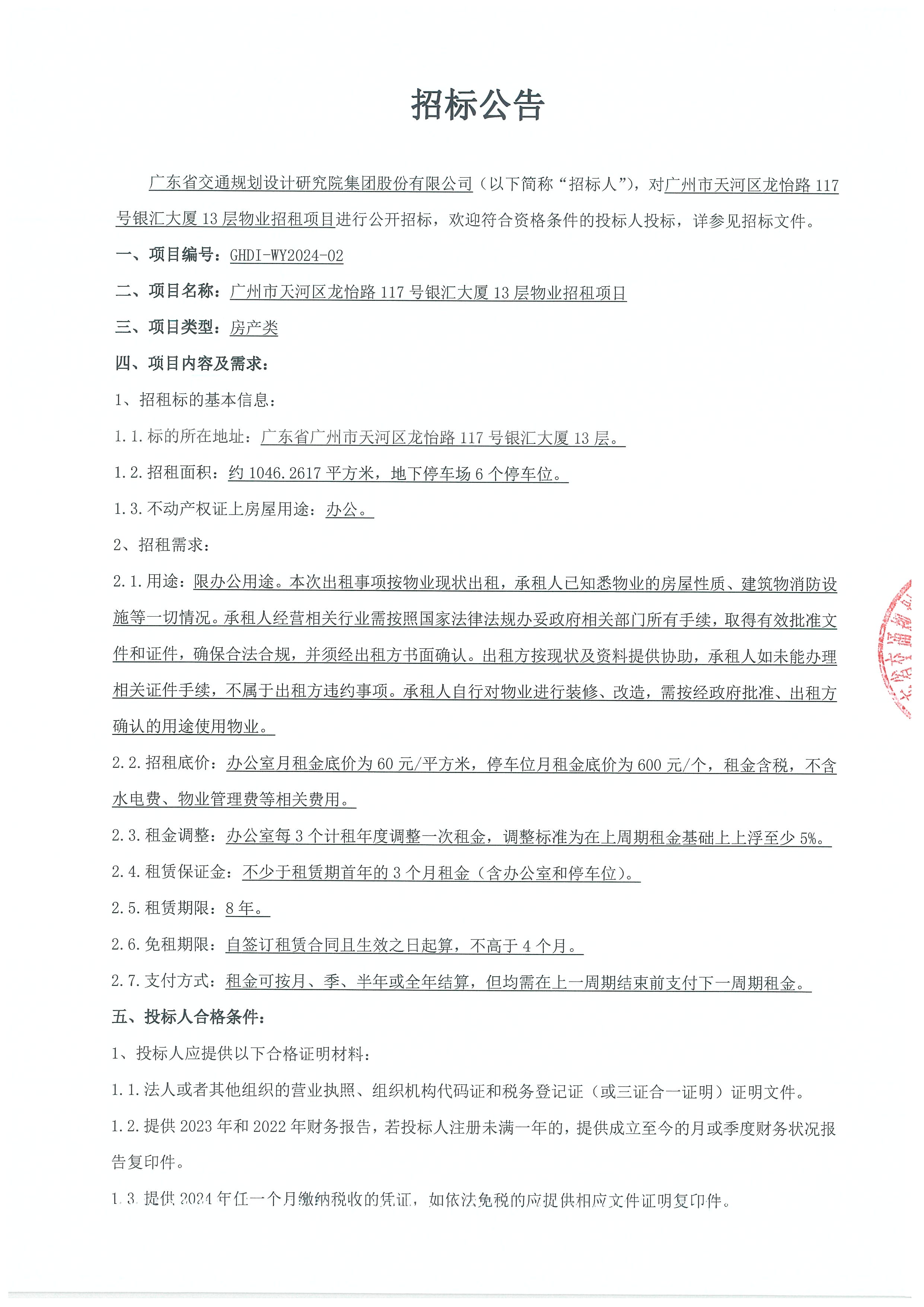 广州市天河区龙怡路117号银汇大厦13层物业招租项目招标公告