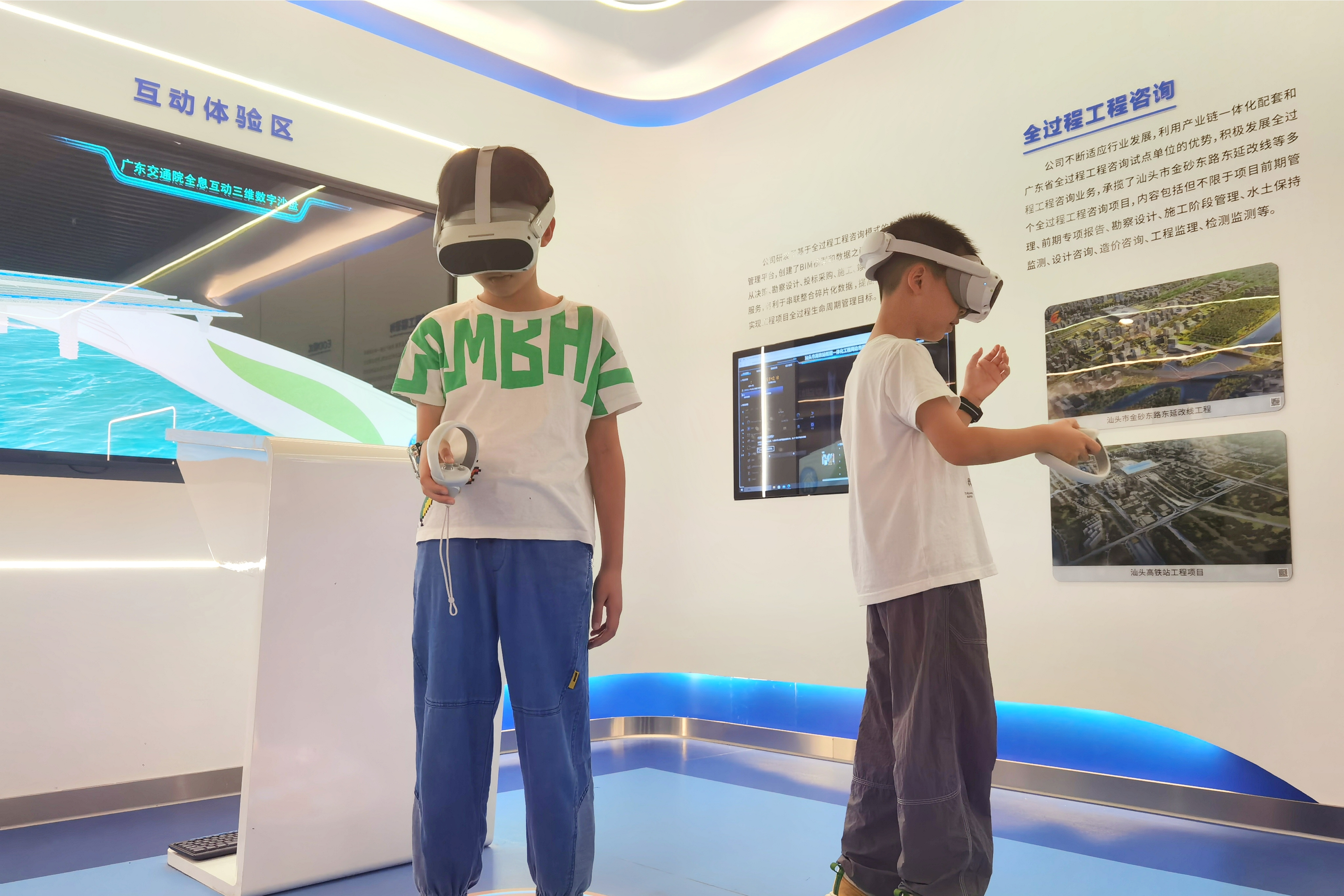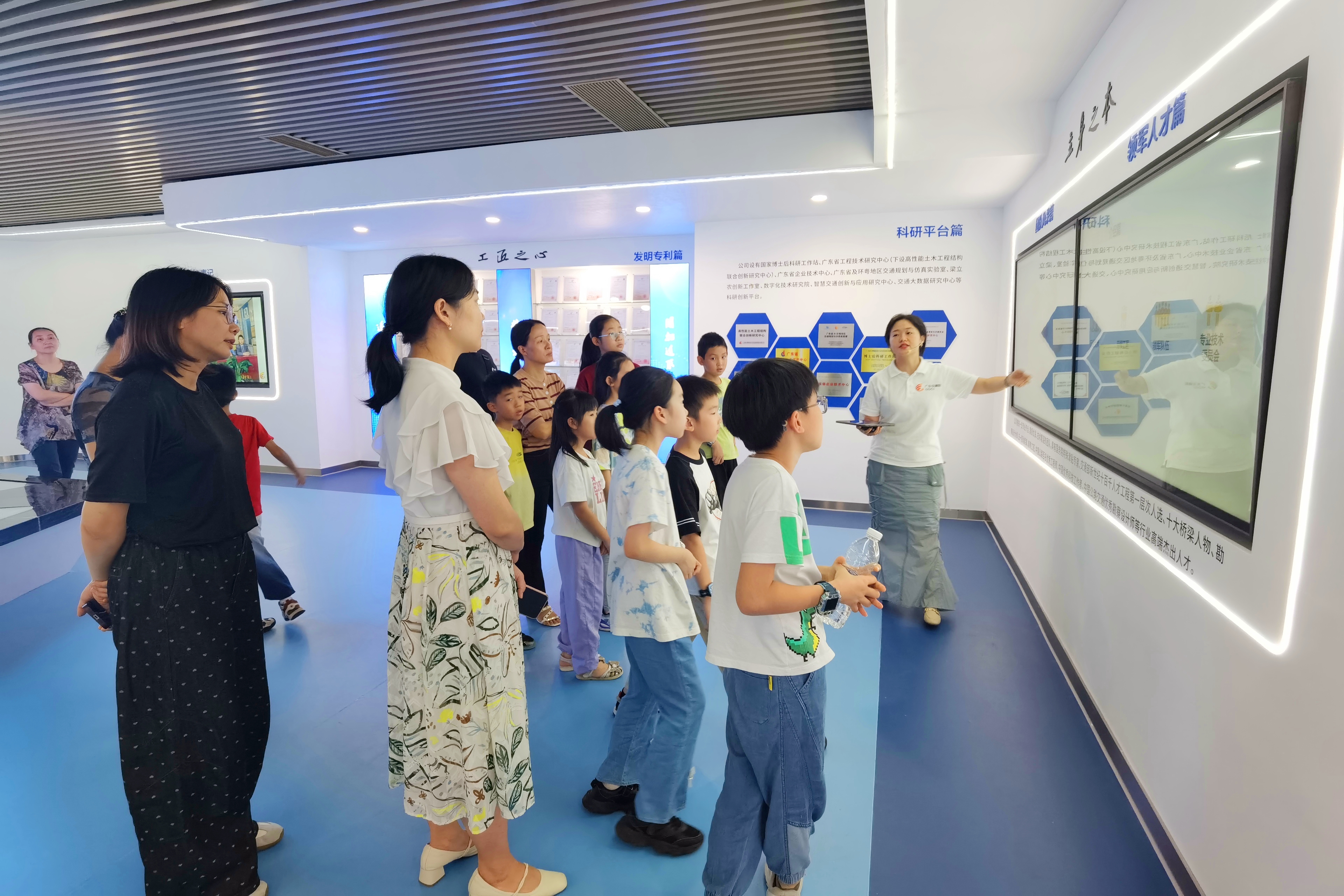 活动伊始,家长与孩子率先走进公司展厅。在讲解员的生动讲述中,大家系统了解了公司的发展历程、核心业务领域、前沿技术探索和企业文化内核。展厅内的互动屏幕与智能设备直观演示了公司自主研发的交通技术在生活中的应用。孩子们尤其对VR体验区充满好奇,纷纷戴上眼镜开启沉浸式之旅,在虚拟世界中“穿梭”于未来交通场景,亲手“触摸”科技赋能生活的无限可能,兴奋的欢呼声此起彼伏。
