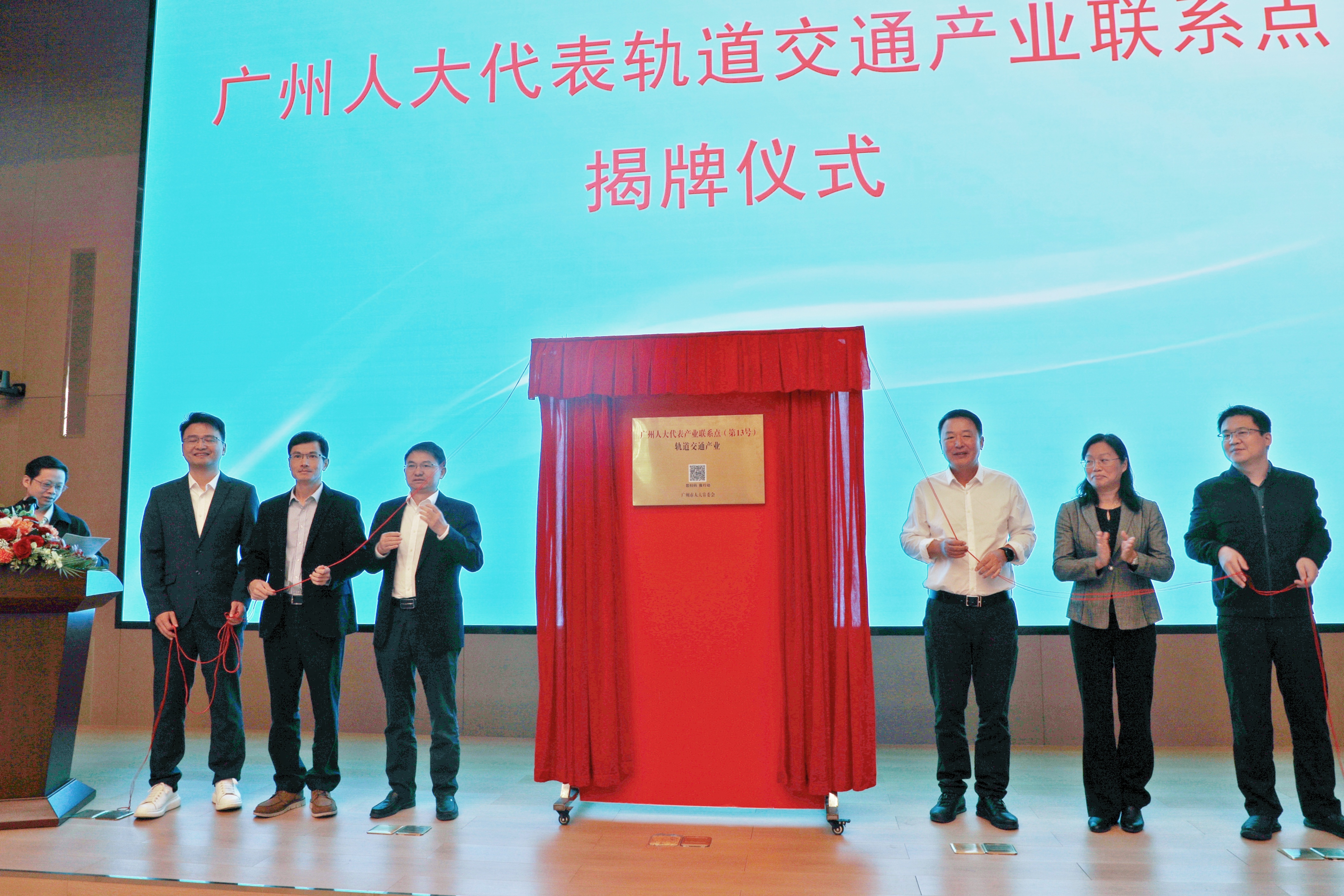 在全体嘉宾的共同见证下,与会领导和代表共同为联系点揭牌,标志着广州人大代表轨道交通产业联系点正式成立,也标志着广州市在推动轨道交通产业高质量发展上迈出了坚实一步,为人大代表履职尽责、服务产业搭建了新平台。