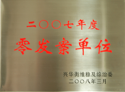 2007年,在公司经营班子的正确领导和全体员工的共同努力下,我公司狠抓治安综合治理各项工作,全年未发生任何综治案件和事故,近日,被广州市天河区兴华街道办事处评为“2007年度零发案单位”,特此报喜。
