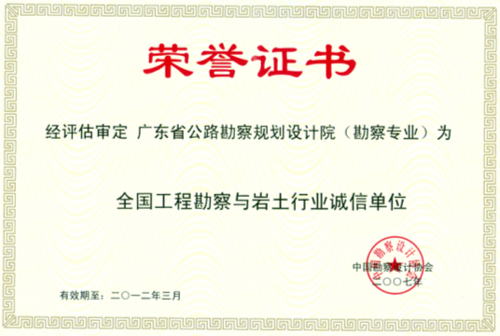 我院被评为首批全国工程勘察与岩土行业诚信单位