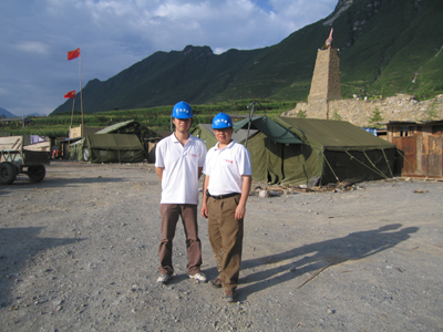 根据工作安排,援建队原计划于7月14日赶赴汶川,后提前至7月7日,在接到提前赶赴汶川的通知后,我司三名技术人员二话没说,立即对手头工作进行了调整,并在预定时间到达了重灾区——汶川县城。到达汶川后,三名技术人员冒着“脚踩滑坡,头顶飞石”的危险,在极其艰苦的条件下,克服生活上的各种困难,顺利完成了汶川地质地形勘察、交通设施损毁调查任务。7月20日,为了更快推进汶川萝卜寨公路的开工建设,公司又增派了冯心宜同志赶赴汶川,与先期到达的技术人员汇合,共同开展项目前期工作,截至7月29日,已按要求提交了《汶川萝卜寨震后重建、改建工程地质踏勘报告》;原定于8月8日前提交的《萝卜寨公路恢复重建工程研究咨询报告》也可按时完成。