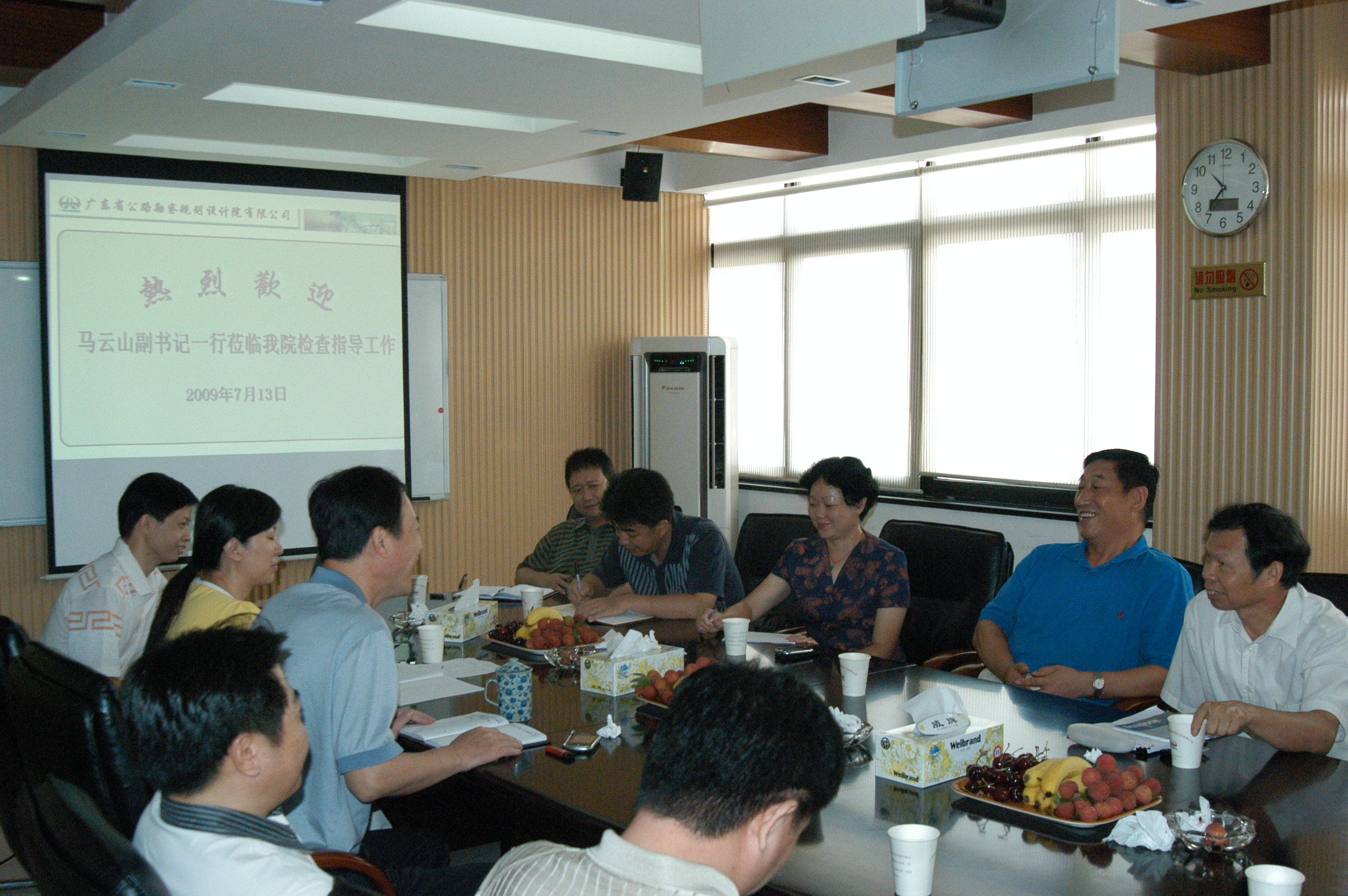 7月13日,省交通集团马云山副书记率党群工作部李春萍部长、审计监察部官锦云部长一行六人来我院调研党建、廉政建设工作。公司董事长李江山等在家领导以及行政事务部有关人员出席了座谈会。 会上,公司董事长、总经理、党委书记李江山同志向马书记一行汇报了公司改制以来的主要工作情况,并重点介绍了公司2008—2009年度的党建及廉政建设工作。马书记一行对我院改制后仍然坚持按照集团的有关要求,在党建及廉政建设等方面开展了大量卓有成效的工作感到满意,并对今后的工作提出了具体指导意见。