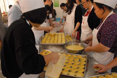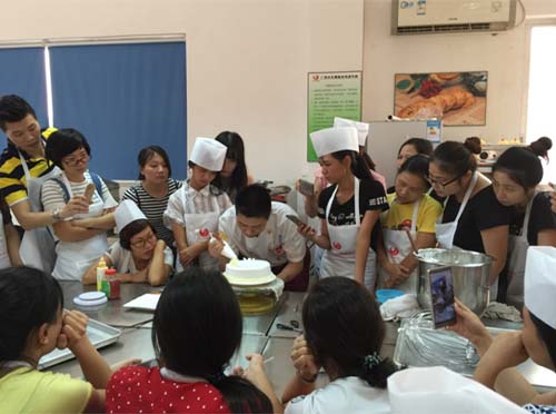 学习品种包含但不局限于慕斯、蛋挞、雪媚娘、酥皮面包、红豆面包、戚风蛋糕、抹茶布丁、蔓越莓饼干、酥皮奶油泡芙等。专业西点师不仅在操作前讲解如何选用原材料、原料配方、操作重点、注意事项,让学员从基础学习,轻松掌握;还在现场示范制作流程,零距离,手把手教学,让一切变得简单易懂,一学就会。广大学员通过亲手烘焙加工,自制的红豆吐司面包、奶油蛋糕新鲜出炉,色香味俱全。大家看着出炉的精致成品,欣喜不已,相互品尝比较,好一派热闹。