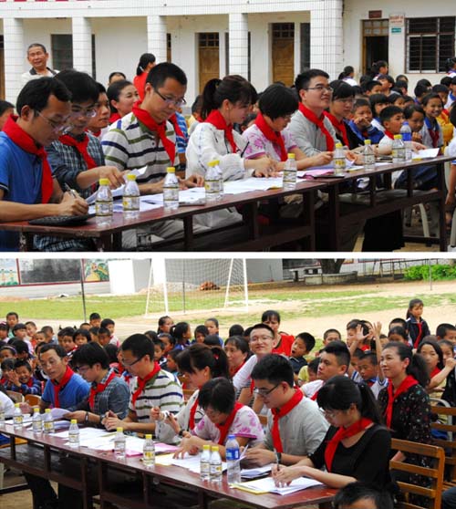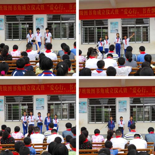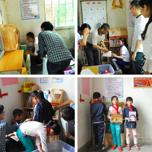 搭建一个“图书角”,分享一座“精神粮仓”——第二党支部党员同志们继续满怀着爱心和热情,践行他们服务山区留守儿童的创想。2017年5月5日,第二党支部党员同志们历经五小时车程,跨越三百里路程,到达河源龙川黄布镇欧江小学,走进山区校园,开展捐赠“爱心图书角”活动。这次活动中,第二党支部为欧江小学9个班级各创建了图书角,捐赠价值接近两万元。小小的图书角,装载的不仅是书籍和知识,更是支部党员同志们扶贫助困、捐资助学的爱心,以及他们对山区儿童健康成长的热切期盼。