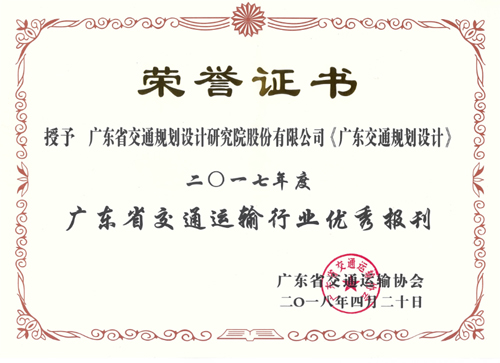 公司报刊《广东交通规划设计》荣获2017年度广东省交通运输行业优秀报刊
