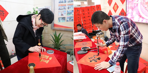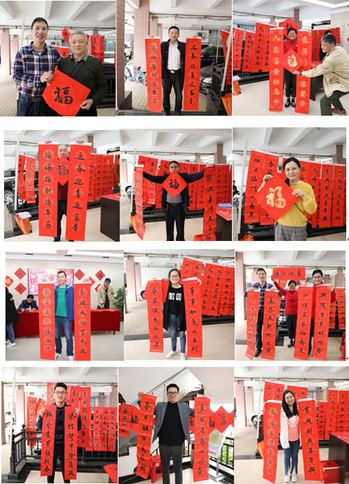 活动现场翰墨飘香,前来领取春联的职工络绎不绝。现场有事先写好的春联、“福”字,向职工发放;职工也可自选或自拟春联内容,由书法爱好者现场书写。火红鲜艳的春联承载着职工们挥别狗年、喜迎猪岁的美好愿景。大家手捧着同事们亲手书写的一副副精美的春联、一个个喜庆的福字,愉悦之情溢于言表,为新春佳节增添了一份别样的喜气。本次活动送出春联与“福”字共300余份。